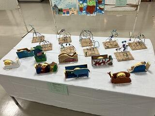 <左:5年生の針金アート/右:6年生のテープカッター>
