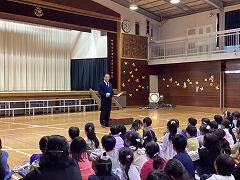 <全校合唱「すてきな友達」~飯田校長先生のお話>☆進行は児童会役員が担当しました