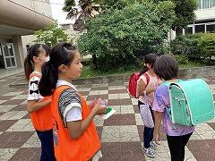 今日から緑の羽根募金運動が始まりました。朝の登校時に,児童会役員が昇降口前で募金した児童へ緑の羽根を配付しています。