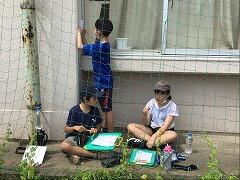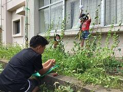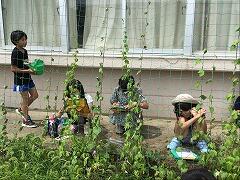 真夏の日差しが厳しい5校時でしたが,4年生が理科「季節と生き物(夏)」の学習で植物の観察を行いました。育てているツルレイシに水をやりつつ,徐々にグリーンカーテンになりつつある様子を観察シートに記録していきます。