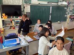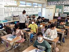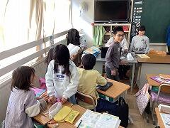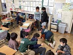 わんぱくタイムや昼休みと違い,10分休憩はみんな教室で過ごしています。「オン」「オフ」切り替えの時間でもあるため,リラックスする二小ちゃんたち。担任の先生との雑談や友達との会話,じゃれ合いと,各々で一息ついています。