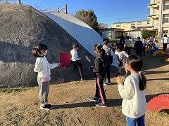 3年生の二小ちゃんたちが鏡や下敷きを使って,理科「光の進み方」の実験に取り組んでいました
