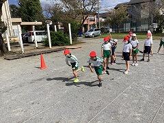 先々週に始まった新体力テストも,今回で3回目を迎えます。今日はボールスローと50m走の測定を行いました。ボールスローは直径2mの円内から投げるので,助走のつけ方がポイントです(写真は2・3年生の様子です)