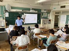 教室では,夏休みの過ごし方についてしおりを元にみんなで確認しました。昨日まで勉強を頑張ってきた5年生,最終日にレクができましたよ~(右下写真2枚)