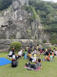 12時からはお昼タイムです大仏様に見守られながら,みんなでお弁当をおいしくいただきます