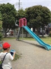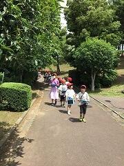 学区内の公園なので遊んだことのある子も多いのですが,みんなで「学習」として来ると,いつもとは違う新たな視点で見ることができますね。