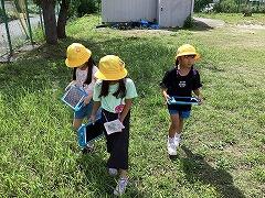 1年生はiPadを携えて校庭に出て,生活科の学習で虫さがしを行いました。草むらや日かげで虫を見つけて,iPadのカメラでパシャリ。動画を撮影している子もいました2年生は音楽室で専科の吉田先生と音楽の学習です