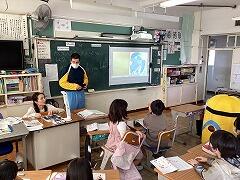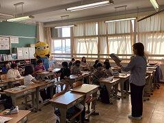 3年生が外国語活動に取り組んでいますが・・・ん後方に黄色の物体が