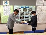 昼休みに,1学期に実施した「租税教室」後に作成した,ハガキコンクールの優秀作品の表彰が行われました。柏法人会の皆さんから,賞状と記念品をいただきました