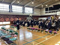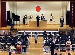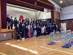 青空の下で,第47回卒業式が行われましたシーンとした厳かな空気の中で,やや緊張した面持ちで入場した6年生でしたが,小学校最後の大事な授業,とても貴重な経験ですね。凛としたとした表情で,集中して臨むことができました。
