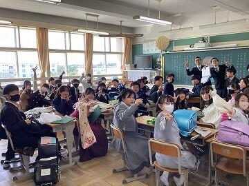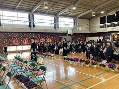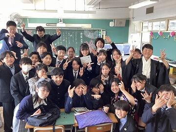 欠席者もなく卒業生65名,みんな最後まで立派な態度で卒業式に臨むことができました。最後の学活で担任の先生に「ありがとう」を伝え,気持ちのよい笑顔でハイ,チーズ