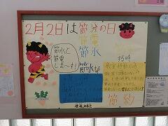 節分と環境をかねて,みんなに節電・節水を呼びかけました。手を洗うので,水をたっぷり使います。石鹸で手を洗っている間は水を止めるなど…ちょっとしたことの工夫が大切ですね。