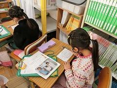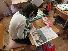 1年生は,お世話になったペアの6年生へ感謝のお手紙を書いています。年度の初めに6年生と一緒に撮った写真を見ながら,どんな言葉を書こうか…一生懸命に考えながら鉛筆を走らせていました。