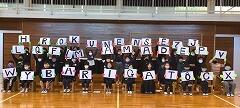 ハンドダンスは4色に分かれ,動きが揃っていてとてもきれいでした。後半,歌に合わせて,アルファベットの文字を高く上げると…バラバラに見える文字の中に,実はメッセージが隠されていました。