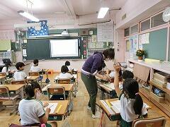 1年2組では,「ぬ」の文字を練習していました。「ぬ」のつく文字を集めたり,書き順を先生と一緒に空書きしたりしていました。