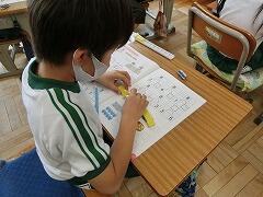 さくらんぼ計算のときは,ブロックをつかって答えを出していました。担任の先生の他にも低学年支援員の佐藤先生にも教わりながら,たくさん丸をもらったり,ほめてもらったりしていました。