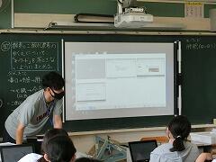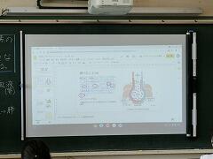 今年から無線で画面を黒板のプロジェクターに投影することができます。自分のパソコンで作った説明資料を画面で共有しながら,説明したり発表したりしていました。