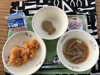 今日は,チキンライス・おさかなナゲット・キャベツとウインナーのスープ・