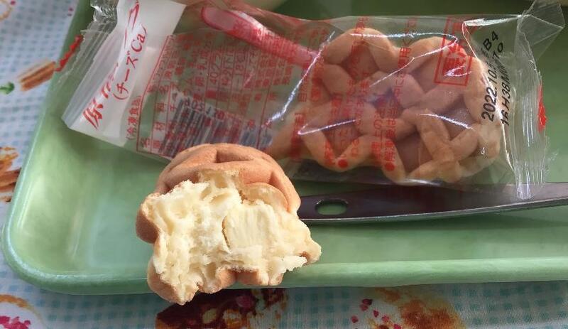 中にはチーズが入っています!外側のワッフルの甘さと,チーズのしょっぱさ?が