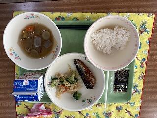 給食の時間ギリギリに帰ってきたので,職員室でいただきました。