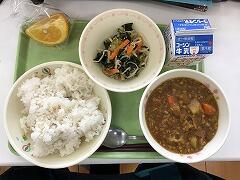 今日は,ポークカレー・レタス入りわかめサラダ・あまなつみかんでした!
