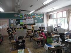 1年生が,国語の「すずめとくらし」を学習した後に,教科書に載っている写真をもとに,自分たちで文章を考えました。ノートにもびっしりと文が書かれていました。4月から比べて,急成長しています。