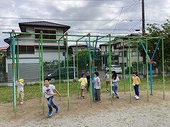 うんていや鉄棒,登り棒を使って遊んだり,バスケをしたり,クラスでのドッジボールや鬼ごっこを楽しんだりと,みんな15分間を思い思いに過ごしています。