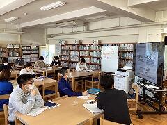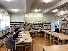 昨日の午後に,本校の図書室を会場として「風早中学校区・第1回学校運営協議会会議」が行われました。昨年度に風早中・風早南部小・大津ケ丘第二小の3校合同で発足した「コミュニティ・スクール(CS)」の運営会議です。