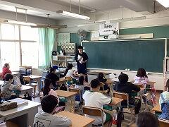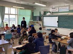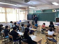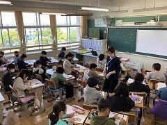 5年生は1組で佐藤先生との外国語の授業,2組は体育専科の湯田先生とソフトバレーボールの学習を行いました。2年生は図工で,絵の具やクレヨンを使っての絵画です
