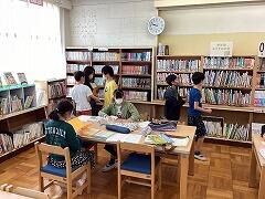 6年生は理科の実験で,ジャガイモの葉に作られる養分を調べました。4年生は,図書室の江川先生が社会科の学習に関連する本を紹介してくださいました