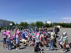 3校時に,震度5強の地震が発生した想定の避難訓練を実施しました。これまでにも各学級・学年ごとに避難経路確認をしてきましたが,全校一斉に集まって避難するのは実に4年ぶりでした。