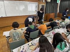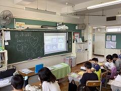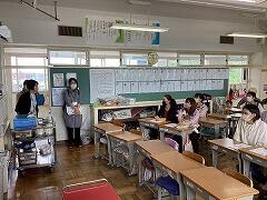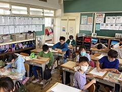 5年生は1組で佐藤先生との外国語の授業,2組は体育専科の湯田先生とソフトバレーボールの学習を行いました。2年生は図工で,絵の具やクレヨンを使っての絵画です