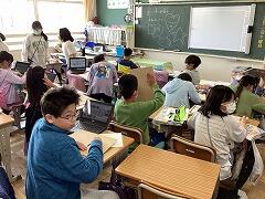 同じ時間帯に,5年1組では図工で糸のこを扱う創作活動に取り組みました。こちらは,2組の藤原先生が授業を担当しています。どんな作品に仕上がるのか…楽しみですね