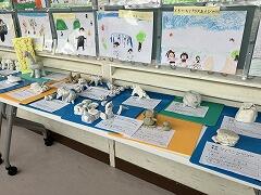 2年生の図工で取り組んだ「ねんどがうごきだす!?」の作品が廊下に展示されていました。どの作品も,今にも動き出しそうな躍動感にあふれていました