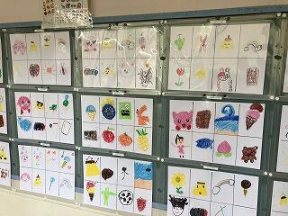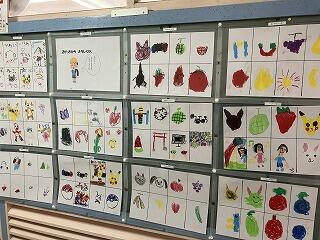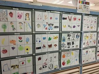 1階には1年生が国語の学習で取り組んだ「すきなもの、なあに」のイラストを描きました。好きな動物やキャラクター,食べ物にお菓子,運動や特技,ゲームなどなど…みんなの好きなものがよくわかるギャラリーでした。まさに「十人十色」ですね