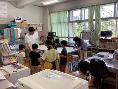 6年生は理科の実験で,ジャガイモの葉に作られる養分を調べました。4年生は,図書室の江川先生が社会科の学習に関連する本を紹介してくださいました