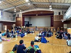 夕食後は体育館でキャンドルファイヤーです雨天