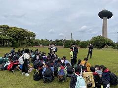 その後は,栽培漁業センターから鹿島港公園に移動して,みんなで昼食です。雨も降っておらず,お弁当を外で食べることができました食べ終えたら,柏市に戻ります