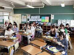 まだ机は前向きですが,時期を見てコロナ前のような班の形での食事も再開していければ…と思っています。