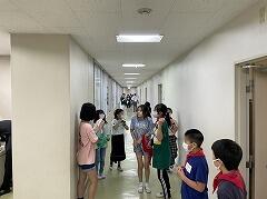 1年生の二小ちゃんたちが,わんぱくタイムに校舎内の教室探検をしています。時間が短いので,1年生教室の真上の2階にある職員室・校長室・理科室などが中心ですが…iPadを携えて,グループで「どこ?どこ?」とキョロキョロしながらも懸命に探検しようとする姿がとってもかわいらしいです