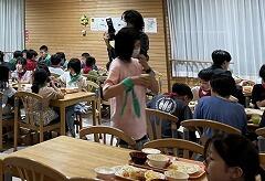 いろいろな活動でお腹を空かせた5年生の二小ちゃんたち,夕食は大きな食堂でしっかりと食べましたドリンクバーは飲み放題ではなく,1人3杯までですよ~