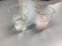 実際に水に溶かしてみることで,トイレットペーパーは水に流せて,ティッシュペーパーは水に流せないのを実感することができました。
