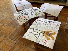 2組の図工は梶本先生が担当しています。1年生に披露する紙芝居の内容をグループで話し合い,画用紙に描いていきました。1年生に喜んでもらえるといいですねぇ~