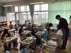 欠席児童がいて余りが出ると,先生がおかわりを募って配ったり,牛乳やデザートなどはジャンケンでもらう児童を決めたりしています。みんなで協力して,残菜を減らしています