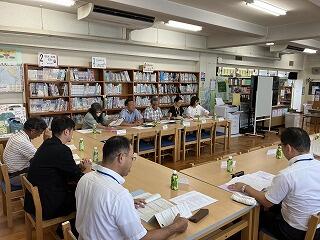 午後には,本校の図書室を会場として「風早中学校区・第2回学校運営協議会会議」が行われました。昨年度に風早中・風早南部小・大津ケ丘第二小の3校合同で発足した「コミュニティ・スクール(CS)」の第2回目の運営会議です。第1回の様子