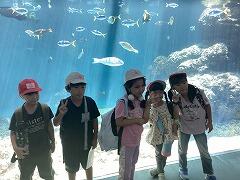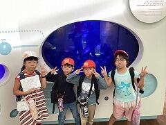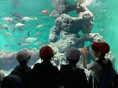 バス車内では2年生が考えたクイズをしたり,DVDを見たりして楽しく過ごしました。水族園に到着後,いよいよグループ別行動の開始です。2年生と1年生の混合グループで,2年生が1年生の手を引いて館内の魚を見学していきます。「こっちだよ~」と1年生に声かけする2年生の姿がほほえましかったです