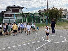 先々週に始まった新体力テストも,今回で3回目を迎えます。今日はボールスローと50m走の測定を行いました。ボールスローは直径2mの円内から投げるので,助走のつけ方がポイントです(写真は2・3年生の様子です)