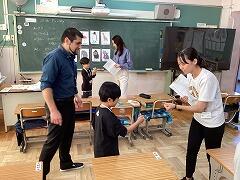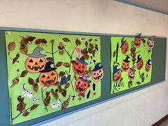 さくたんでは,3クラス合同でシルバ先生との外国語活動に取り組みました。(廊下には,さくたんのみんなで作ったハロウィンの掲示物が飾られています)