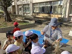 2年生では,先日の芋掘りでサツマイモと一緒に掘り出したつるを使ってリース作りに取り組みます。今日はベースとなる輪っかの部分を作りました