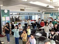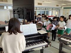 4階の音楽室からは,いろいろな学年の元気な歌声が聞こえてきます午前中は6年生が合唱曲の練習に取り組んでいました。パート別で,家庭科室でも練習していました。